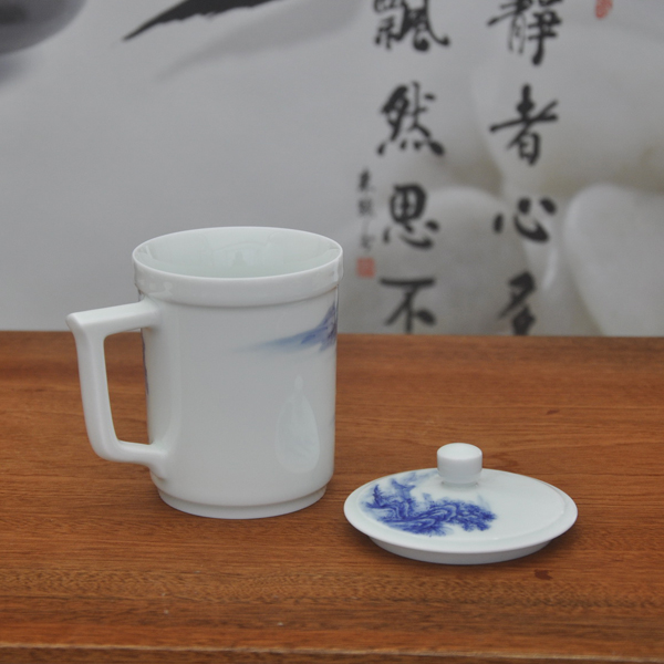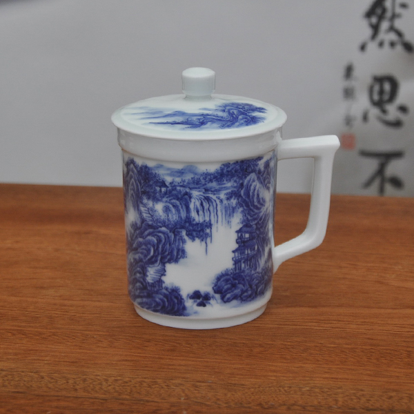 重巒疊嶂,山高水長。畫面視覺沖擊感、空間延伸,恰到好處。青山綠水,宛如仙境,又似一簾幽夢,再加上傳統(tǒng)的青花瓷,青花茶杯的世界,文趣古味,給人一種空靈與深幽之感。