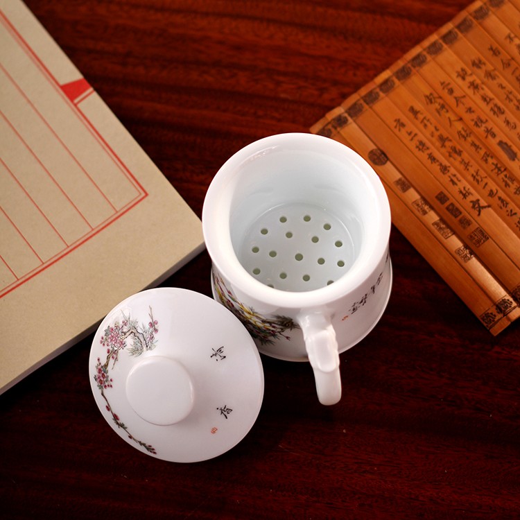 “霓裳片片晚妝新,束素亭亭玉殿春”。玉蘭香遠(yuǎn),竹梅秀潔。誠(chéng)德軒此作粉彩工藝,圖構(gòu)清新,設(shè)色秀雅,招展的花枝與飛鳥相呼應(yīng),寓意生命的和諧美好。