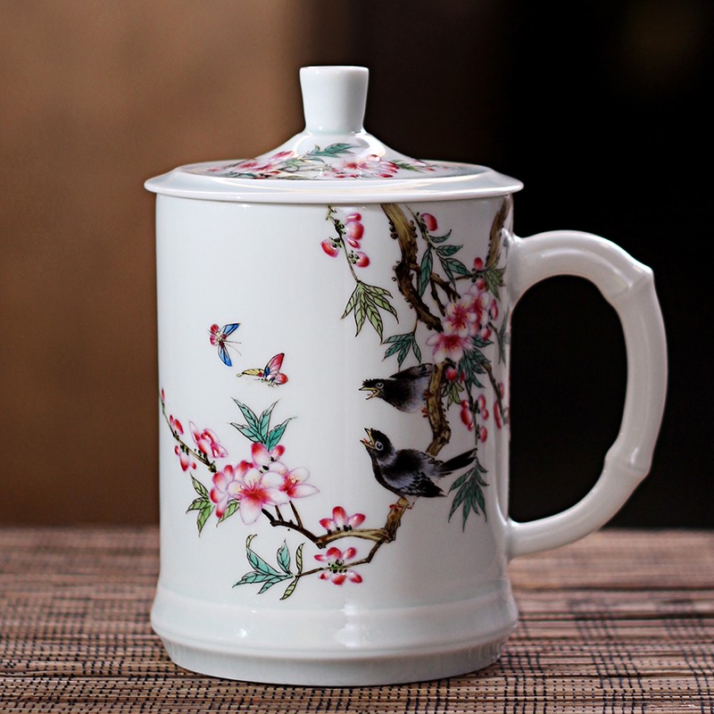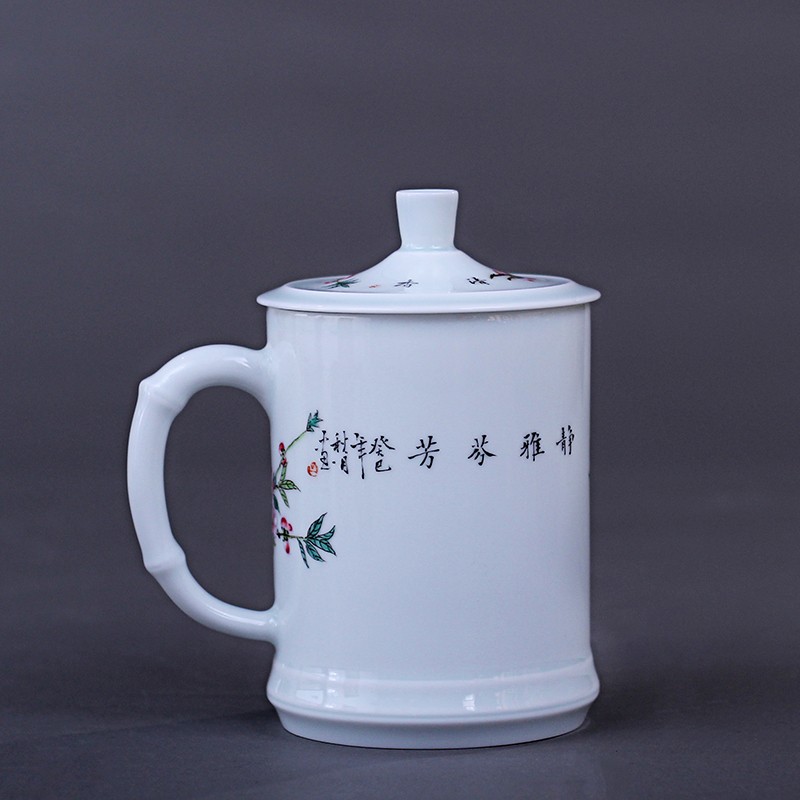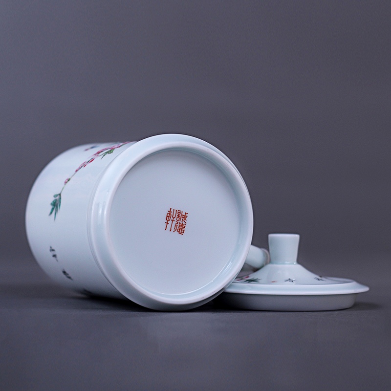 白玉新染紅粉妝,春風(fēng)輕拂花枝香,翩翩蝶舞戀花美,燕語鶯歌滿庭芳。誠德軒這款茶杯粉彩繪制,清新簡潔的構(gòu)圖,粉潤秀雅的色澤,畫工精細(xì),景色自然和諧,美麗宜人。