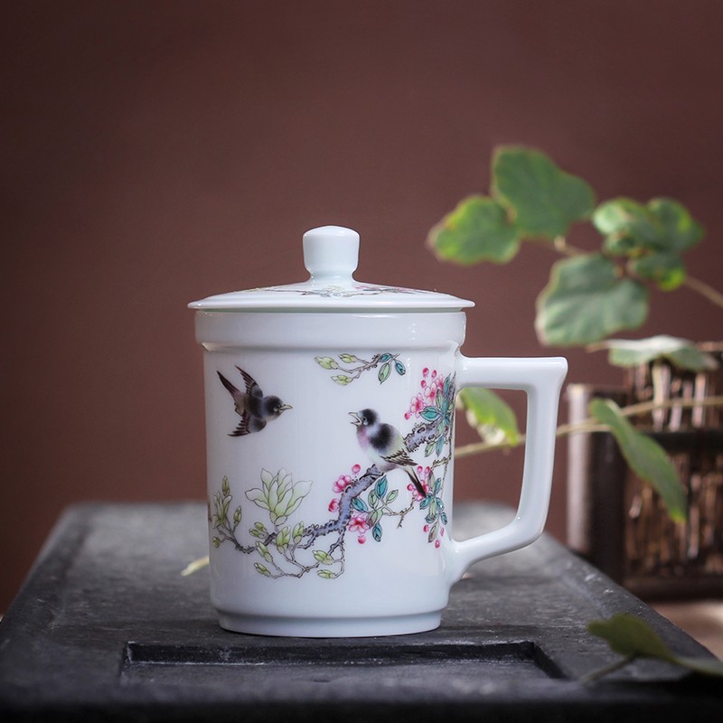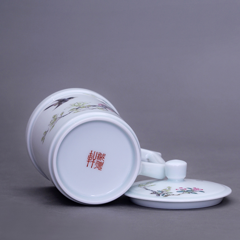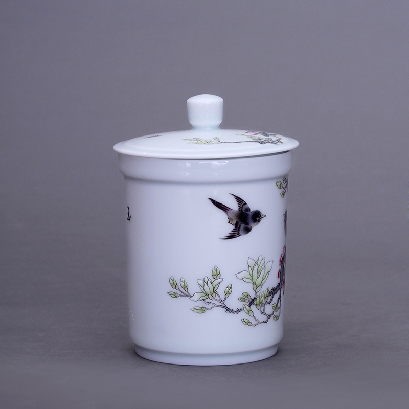 霓裳羽衣胭脂染,朱顏玉色舞紛紛,林靜春深春色滿(mǎn),傾心一片一室香。這款茶杯粉彩繪制,畫(huà)面清新俊朗,在畫(huà)師精細(xì)的描繪下,淡雅的玉蘭、粉嫩的海棠嬌艷,映在潔白瑩亮的瓷釉之上,更顯得優(yōu)雅、高潔。